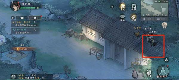 这个屋顶,我们先要触发在枯井旁被大黄哥抢蒲公英的剧情,然后走到下图位置,触发情景对话,才能上来