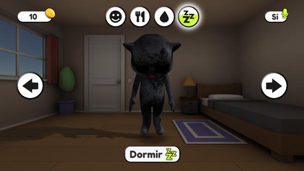 1、打开会说话的胡安(Scary Juan)最新版,游戏上方显示着胡安的健康、饱腹、饮水、睡眠等;