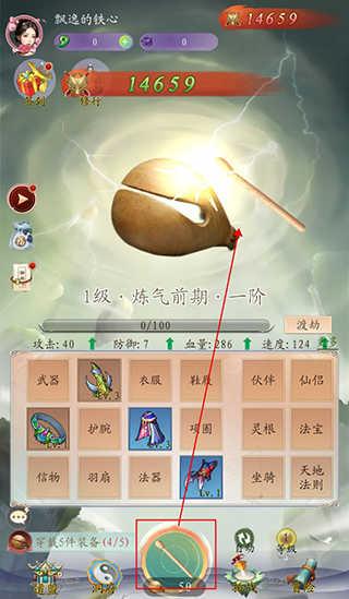 1、游戏的玩法一敲木鱼为主,玩家敲击木鱼就可以获取装备,同样的装备可以根据战力一键替换。