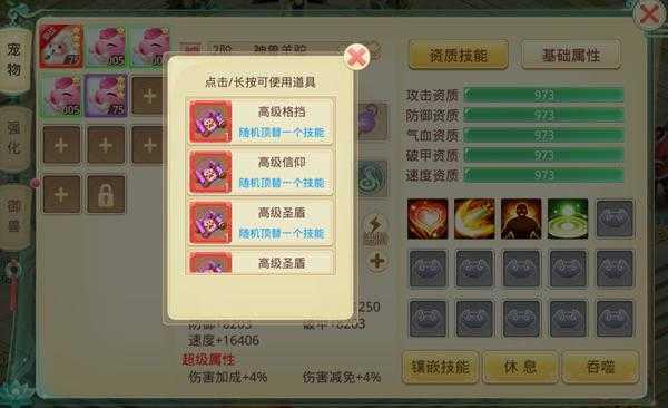 宠物技能作为宠物战力快速升级的要素之一,技能分为普通技能、高级技能和超级技能