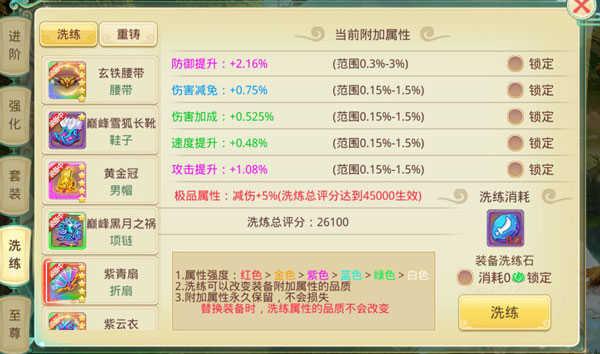 8、洗练功能处,玩家可以洗练已有的属性数值,也可以重铸已有的属性类型,洗练到红色属性时记得要锁定哦。