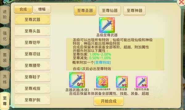 4、可以消耗金色三星装备来合成红色3星装备,可以消耗红色3星装备合成红色5星装备。神器、仙器、圣器也可以通过消耗对应的材料来合成。所以有低级的装备注意是否需要用来合成装备再吞噬或者捐赠哦。