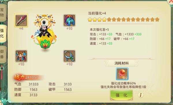 宠物强化可以加强宠物基础属性,强化的等级越高,属性加成越高,随之的强化记录就越小,宠物强化石可以通过材料副本来获得。