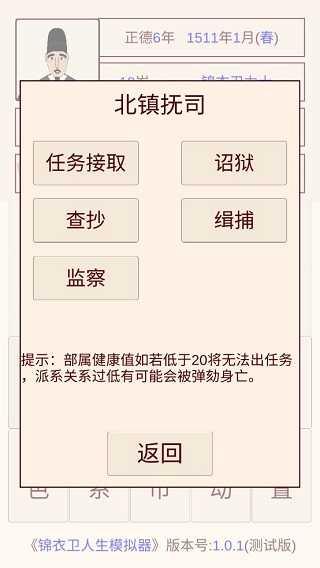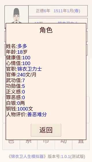 2、锦衣卫人生模拟器游戏中玩家可以进行更多的锦衣卫年代的世界了解,玩家可以直接在这里操控自己的人生。
