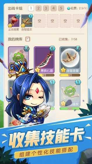 - 创新了一套技能卡系统,玩家可以通过收集不同卡牌获得技能,并携带自己喜欢的卡组出战!