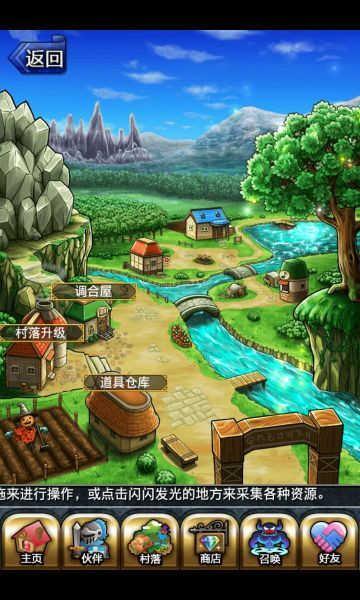 看游戏下方的主菜单,就会发现“村庄”,这也是该游戏有别于其他传统RPG的一大特色。游戏中的村庄设计可以让玩家进行资源收集以及各种道具的制作,随着等级的提升不断有新的功能设施开放。玩家通过战斗得到一定的资源投资开发村庄,可以解锁新的消耗及强化道具,也可以提高各个资源点的采集效率。随着主线进展,村庄内会开放制药、素材、武器、防具等小屋,同时还有树林、河流、田地、矿山等资源,玩家不仅能够在战斗中得到素材,还可以在村庄的资源中获得大量素材哟~然后到生产小屋中生产战斗所需的道具,制作合成武器所需的高级素材,最后打造强力的装备。