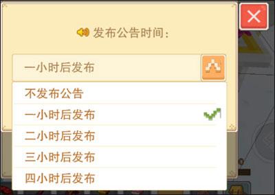 发布公告的时间有5种选择:①不发布②一小时后③二小时后④三小时后⑤四小时。