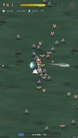 看到这里是不是有的小伙伴已经猜到,就玩法而言,同之前的抖音小游戏《地下车割草》,类似人气作品还包括《吸血鬼幸存者》,没错,操作上以竖屏结合虚拟摇杆的方向移动,通过控制方向来攻击四处而来的妖物魔兽,期间怪物掉落的道具,可以为角色提供大量经验值,怪物等级越高,提供的经验值越强。每当角色完成升级,玩家们便可在从随机的三项法宝上进行选择,通过主动技能与被动技能的搭配,可以合成超级武器!