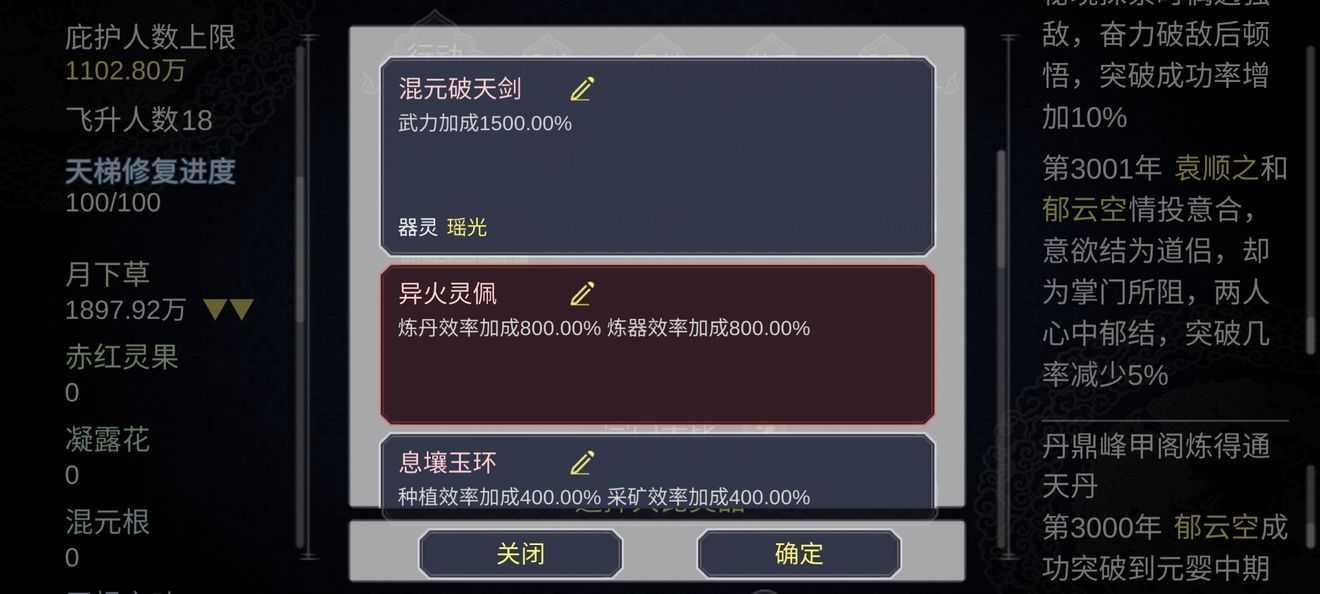 7.装备方面:除了飞升送的,其他武器天阶不一定好过地阶,优先养有突破加成的地阶武器,只有突破几率上去了才是真的省时间