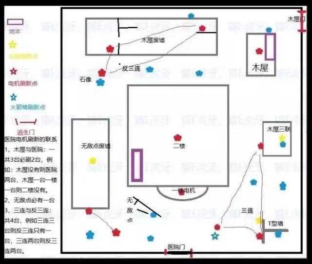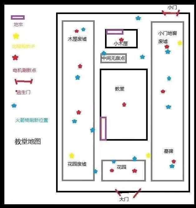 和教堂一样,圣心医院也是二层式楼建筑,圣心医院在目前版本中算是最大的一张地图,和其他两张地图不一样,医院的两个逃生门不是面对面的,木屋门也在一个小角落里,所以还是需要小伙伴们多记记地图才不会迷路哦。