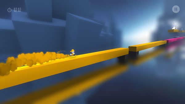 在游戏中奔跑的平台将分为红色与黄色两种,玩家在什么颜色的平台上奔跑,就需要让角色变身成为什么颜色,否则就会在瞬间粉身碎骨,