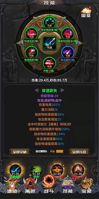 1、构建最爽技能流派,多种不同的技能自由搭配,完成随心所欲