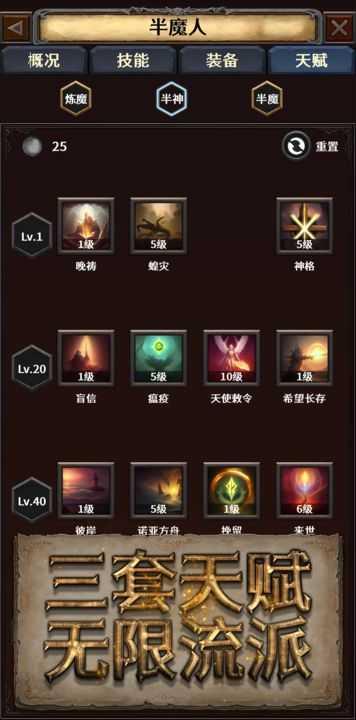 3、-游戏中的流派构筑来自英雄天赋树、装备、技能这三部分,天赋通过提高英雄等级获得,总数有上限,你无法把所有天赋都加满;装备有5种品质,产生的属性和加成效果完全随机,传说装备和套装带有非常强力的技能,但它们很难获得,游戏中有超过一百种效果各异的传说装备和套装;技能是英雄的基础输出组件,你可以从近200种技能中选择10种进入关卡战斗(注意不同种族使用的技能派系有所限制)。