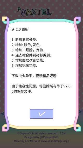 粉彩女孩游戏你不仅仅可以装扮你的女孩,还可以将宠物放在身边,从可爱的纯白小狗,到呆萌的独角兽,一切都可按照喜欢的风格对女孩进行设计,所能装扮的道具齐全使用起来也非常简单,同时搭配灵动的背景音乐,也让许多男儿在此关注,若你也喜欢这款游戏就来下载体验吧。