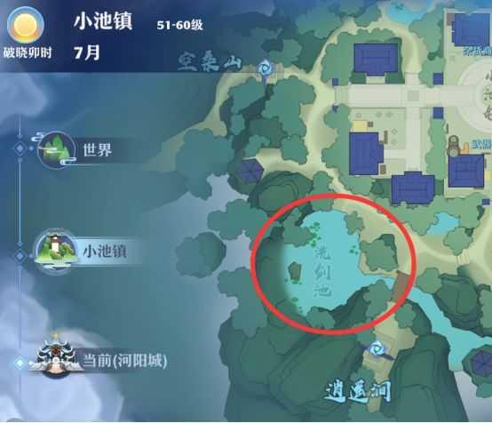 6、这里推荐一个我自己觉得做奇缘非常好的地点,那就是小池镇的洗剑池,这里你可以捕捉戟角羚、采集琉璃尖椒、池子里被牛踢飞,走两步钓鱼,回头就能坠崖,上岸去村子的房间里睡觉,简直是奇缘的宝地!