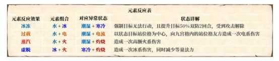 2、举个例子:水+冰,可以冰冻对手,是个非常具有战术意义的元素反应,另外如果你有固定队,也可以根据队里的元素搭配来组合