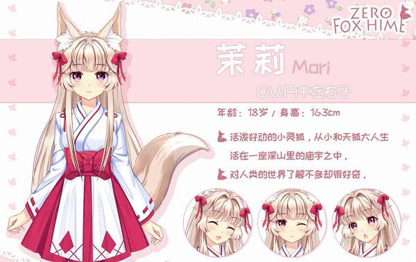 2、莱莉:一身民国时期的服装,刘海旁边扎上了两个红色的蝴蝶结,紫与粉相间的瞳,毛茸茸的双耳曾被源误以为是仿生技术。茉莉刚满十八岁,是游戏中的女主,阴差阳错的遇到了源,她作为一只灵狐,因为从未见过人类,不认识鱼篓也曾因为这个啃咬源在河里丢下的鱼篓,她也不会制作熟食,对人类世界很是好奇,一个十足的吃货,最喜欢的食物是源在小镇上买的烤鸡。