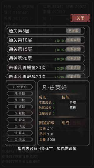 图鉴:通关层数,解锁各种怪物图鉴可增加其属性。