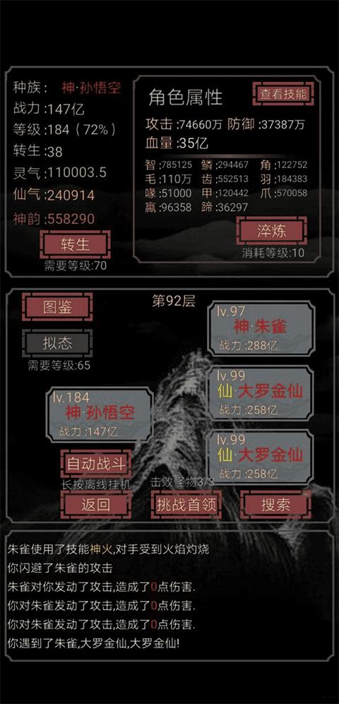 游戏玩法:通过不断战斗提升等级,属性以备挑战更高级的关卡、boss。
