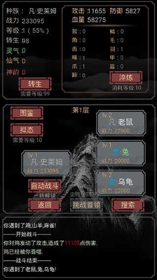 5、生存的点有很多,玩家需要从战斗力,血量,种族,转生等好几个方面来提高史莱姆的能力;