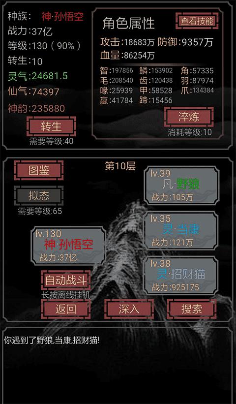 5、灵气、仙气、神韵:这游戏的怪物分四种,凡(就是啥都没有),灵,仙,神。击杀名字带『灵』的怪物可以获得『灵气』,仙和神同理。