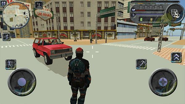 1、靠近汽车会在右边出现上车按钮,不能骑摩托车,开车时右边油门前进,左边按键倒车。