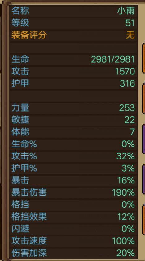 纯输出装应考虑面板攻击、伤害加深。如5只暴伤宠物已满【小狐狸/小花猫/小老虎/黑猫/灰狼】也可带两三件暴击%。