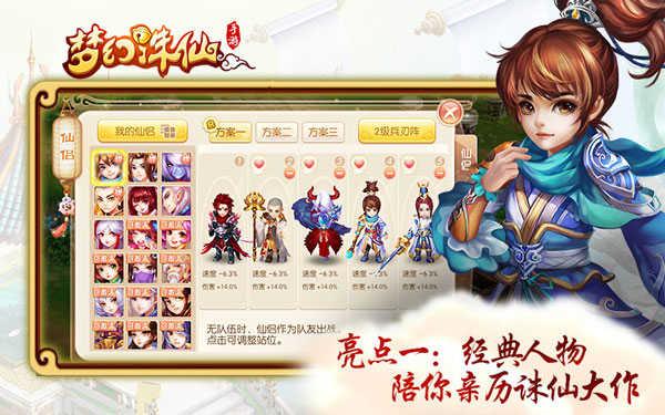 携仙侣、养萌宠、铸法宝,多人组队镇妖探险,回合策略随心搭配,成败一念间;更有天魔降临、妖兽突袭、十二生肖等紧张刺激活动让你惊喜不断;酷炫大招模式,悬浮 3D 效果,浮空出击,一招制敌!