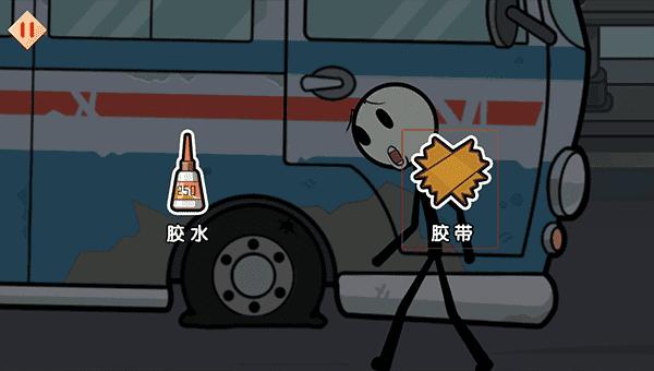 5、车在行驶途中轮胎爆了,那肯定得补补不然家都回不去了,这里选择“胶带”胶水会把手都黏住了。