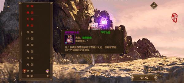 一般情况,开区建议选择随机选择国家,这样有推荐国家礼包奖励。当然,如果你喜欢跟随开区的辅导员作战,就一定要选ta所在的国家哟。(温馨提示:部分区是四国争霸,分别是:宋、唐、汉、楚!)