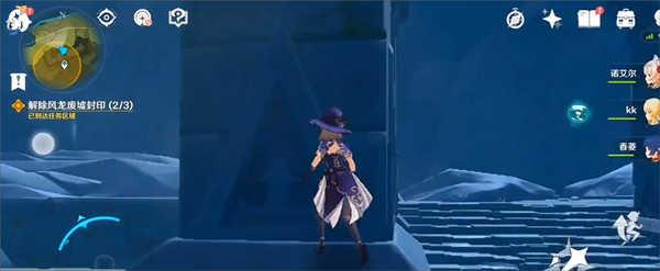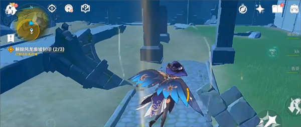 2、然后走到风墙附近的柱子,沿着柱子往上爬;