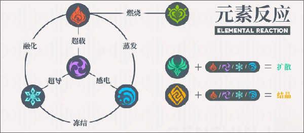 扩散:风元素接触到四元素时会发生转化,除造成原本的风元素伤害外,还会额外造成对应转换元素的伤害。