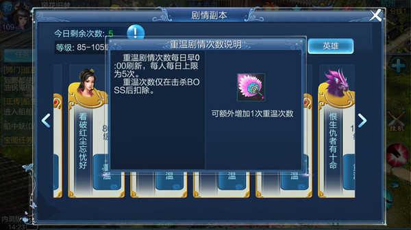 每个玩家,每日将获得5次重温剧情的机会。你也可以通过购买商城道具“五火七禽扇”来增加当日剧情次数。