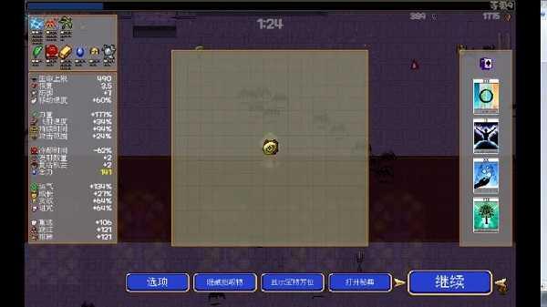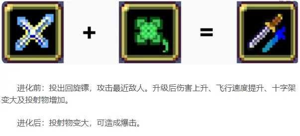 9、后续卡牌:XVIII升级增加攻击范围、XVI部分武器可暴击、XVII升级增加持续时间、V升级增加飞射速度