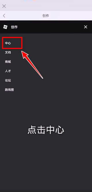 4、会弹出来一排菜单,点第一个“中心”就可以