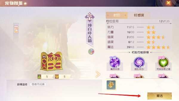 4、这样在宠物图鉴界面去激活它。再点击封印,就可以自动前往该宠物所在的地图了,玩家就可以伺机抓捕宠物