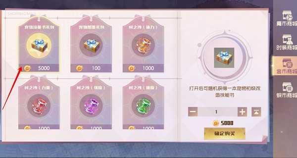 5、那么宠物天赋技能书从哪里来呢,最简单的获取方法就是从金币商城购买,5000金币一个,购买了打开后,就可以学习天赋技能了。