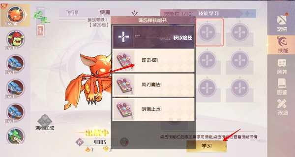 4、买到宠物技能书后,就可以打开宠物界面,选择技能,就可以学习相应的宠物技能啦