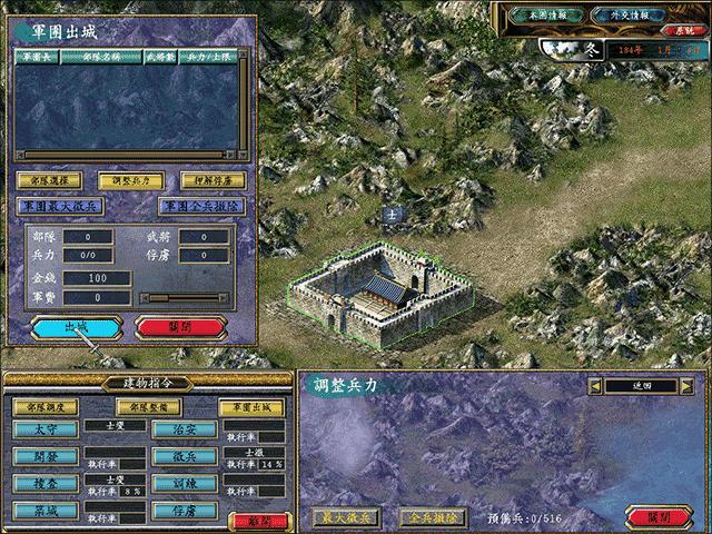 初期武将少,大地图内政的时候要有选择,多发展和治安,然后是搜索和训练,然后是征兵,最后搞筑城,毕竟来人打你的时候,多数都是要出城迎击的,很少打城市攻防(城市攻防掉发展度掉很多,发展度低了,买不到高级物品的)。