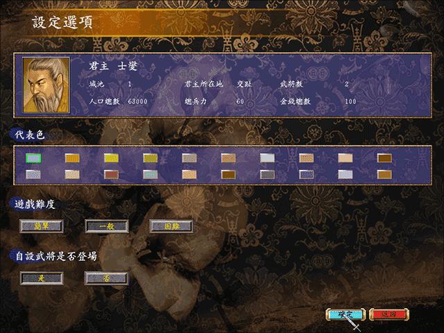 一、剧本与任务选择设定。我把安装目录下save文件夹里的Option.ini打开,把WinNum = 0的0改成1,这个数值是统一天下的次数,这样一来剧本里就可以选择魂归天下这个剧本了。这个剧本应该是难度最大的(难度选择也选难),因为这时候天下全归曹操所有,所有的武将都在曹操收下。我选择新君主,名字大家自己设定,我喜欢自己是个冲锋陷阵的武将,所以设定武力为95,智力为70,别的武将一个不要,就自己一个人。一开始专门挑敌人只有一两个人的城市去打,抓住了能劝降就劝降,不能就收押。因为敌人会疯狂的来进攻,所以你不能守,兵差不多满了就出去攻,但是城市里一定要留一个人,正阳敌人都会来攻击你这个城市,主力不对就可以去打敌人人少的城市了。到差不多收集到200个武将的时候可以开始考虑留下5~10个5人不对的武将守城。然后就是逐步统一天下。具体不多罗嗦了,因为怎么攻城千人战,大家可以在很多攻略上看。