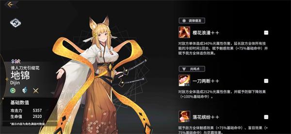 温柔、强大、美丽的女性。不光拥有着高超的剑技,战斗姿态也极其优美,一招一式都使人如痴如醉。作为阳十字商会的一员,对于“美”的追求方面,地锦一向有着十分严格的标准。