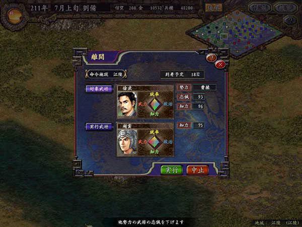 2、条件:特定地域的人物健在,自势力信望有一定值以上,实行武将健康不是重伤,达成以上条件有一定机会发生