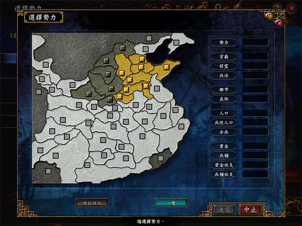 4、势力统合系统:多个弱小势力透过统合成为一个强大势力,可共用武将及资金,信望会上升,志愿兵也会增加。