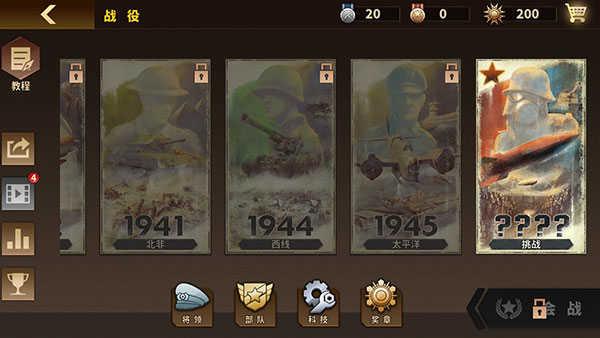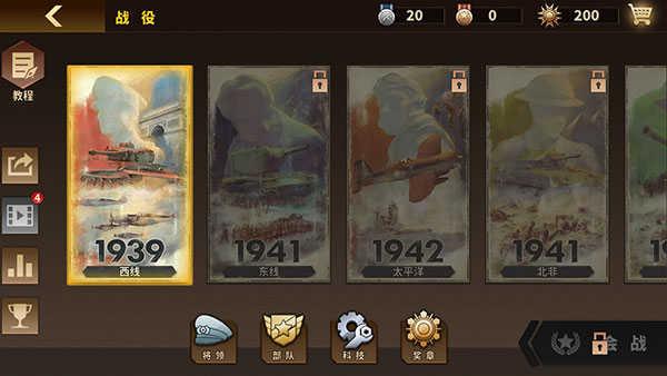 1、目前国际版中的战役包括了1939西线战场、1941东线战场、1942太平洋战场、1941北非战场、1944西线战场、1945太平洋战场和挑战战场。