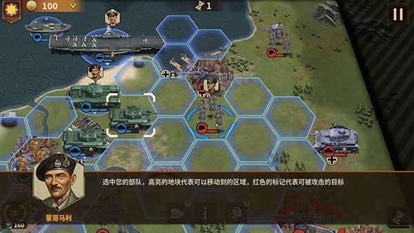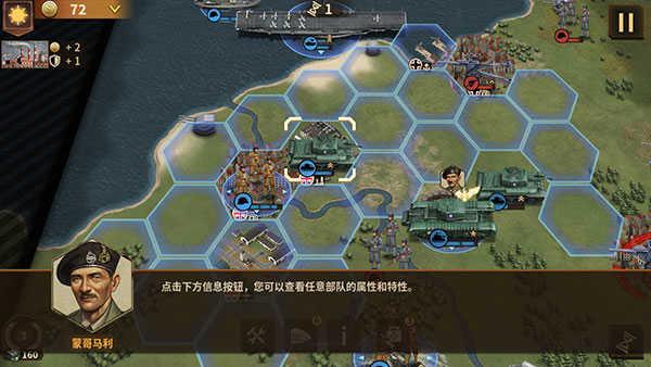 22、在西线与北非大部分战役中,部队不要与敌军太过纠缠,运用部队行动后可再次攻击的特点,尽量攻击挡路的,主要输出针对据点,但在东线与南极中,此方法不适用