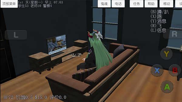 玩法:你是爱跷课的坏学生,一次心血来潮去学校上课,想不到缺课太多,校长广播要把你抓住并惩罚,3-4名老师开始抓你,你只能跑,只能在特定地方瞬移且不能飞行(短时间飞行可以,视为跳跃),而且还有特定日常的事要做,必须撑过一天才能成功。你只能到自家,视听教室,花园,游泳池,图书馆和女仆咖啡厅这几个地方才能瞬移,不能瞬移到山上或海上,可以投降,到花园拿武器将老师全杀掉即可投降,可以用设定或其他暂停游戏查看任务。