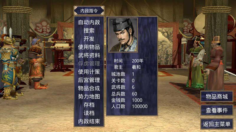 2、游戏进行的大致流程是“内政经营模式”到“大地战略模式”,然后到“战争发生”,再循环到“内政经营模式”。许多玩家说,这个游戏最吸引人的莫过于武将升级系统及必杀技了。