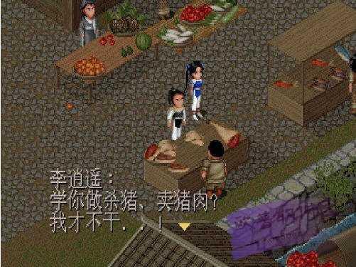 2、拿了桌上的酒菜上楼,那知酒不合苗人口味;不喝拉倒!把酒收进怀中,顺便借花献佛,拿到楼下给醉汉喝,醉汉感谢之余,还约我明晚到城外十里坡的山神庙教我武功,真幸运!正高兴之余,婶婶又叫了!给了20文钱要我到菜市场买鲜鱼!