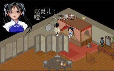 4、进入后(树上可采得鼠儿果)往右下走,看见美女(赵灵儿)出浴,一阵嬉闹后,灵儿得知来意,进入水月宫取得紫金丹;出水月宫即遇佬佬,幸得灵儿以贞节相救,保住性命,但要娶灵儿为妻并留在水月宫。
