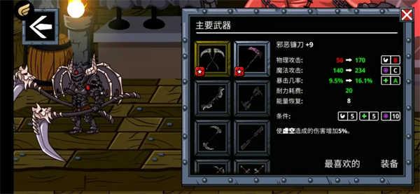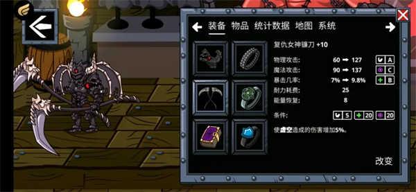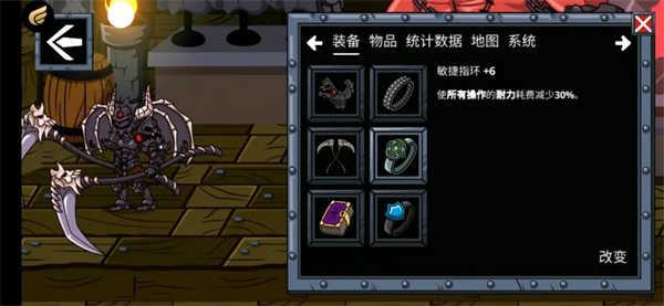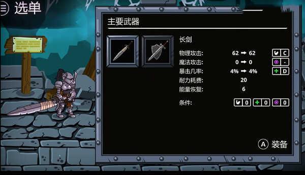 5、游戏角色的装备系统包括了铠甲位、主武器位、辅助武器位各一个,以及饰品位三个。而装备自然是具有多种多样的选择的,双剑、剑盾、大剑、大锤、大斧、武士刀、长矛等各种武器,有通过宝箱搜刮,也有通过商店购买,每种武器的伤害、消耗体力以及各自的连招都各有不同。